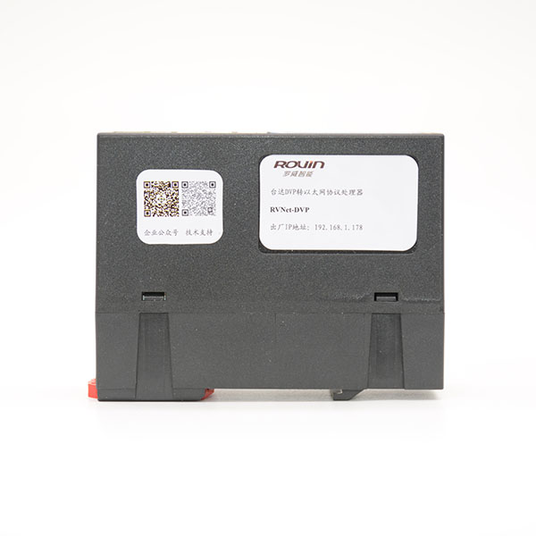 1、安裝在35mm的導(dǎo)軌上,COM1口直接連接至DVP的MD8編程通訊圓口,并擴(kuò)展一個(gè)COM2口用于觸摸屏通訊。RVNet-DVP可直接從PLC編程通訊口獲取電源,也可外接24VDC電源。