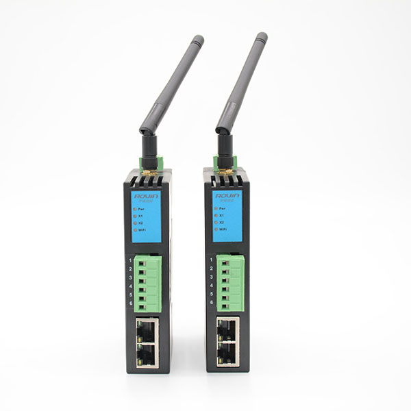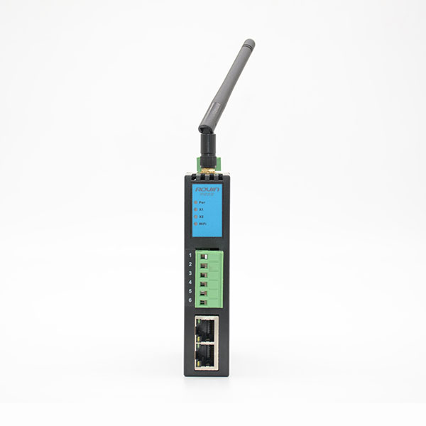 1、安裝在35mm的導(dǎo)軌上,LAN為三個(gè)RJ45接口,具備交換機(jī)功能,LAN連接PLC、觸摸屏和上位機(jī);X1和X2為RS485串行總線接口;WiFi外置高增益天線,可連接上位機(jī);RVNet外接24VDC電源供電;